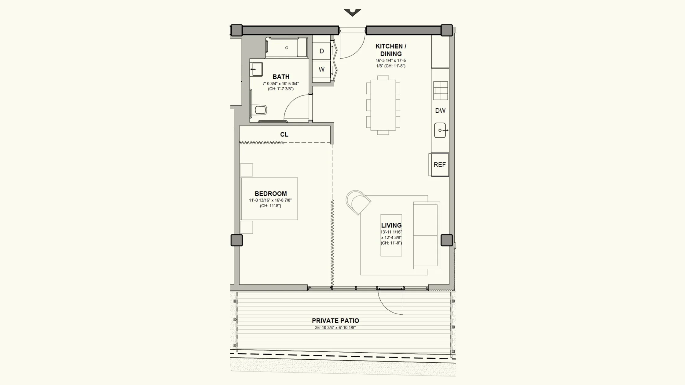 Outdoor patio, in-unit laundry, dishwasher